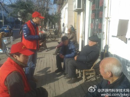 13日,东夫的老人们在家门口享受冬日暖阳,市科技局的志愿者们上前与他们攀谈,宣传文明城市创建知识。